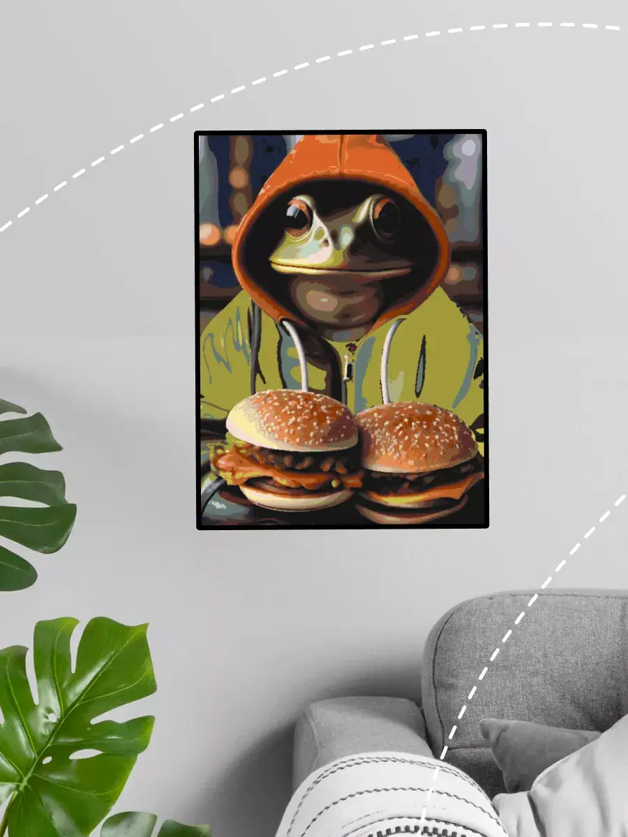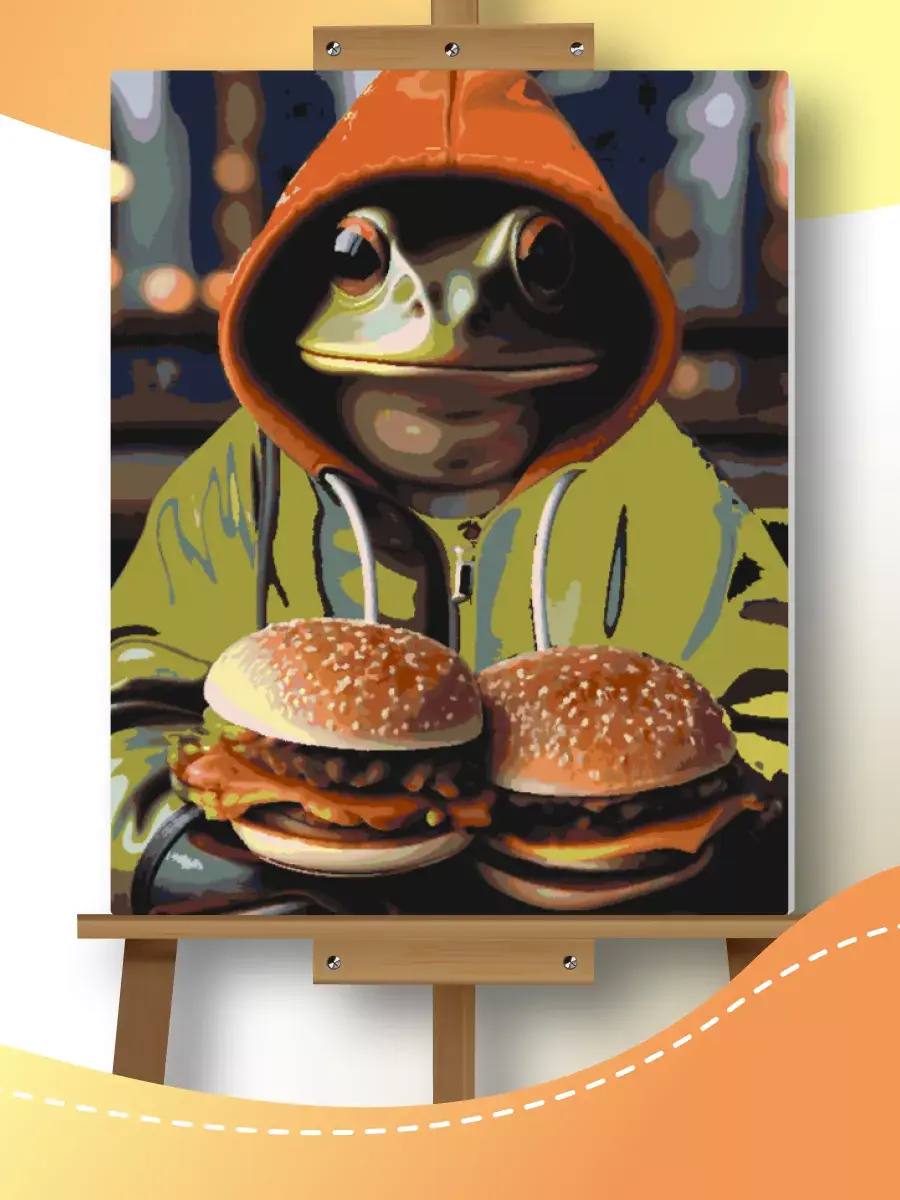 Картина по номерам на холсте на подрамнике 40*50 Лягушка с гамбургером,
