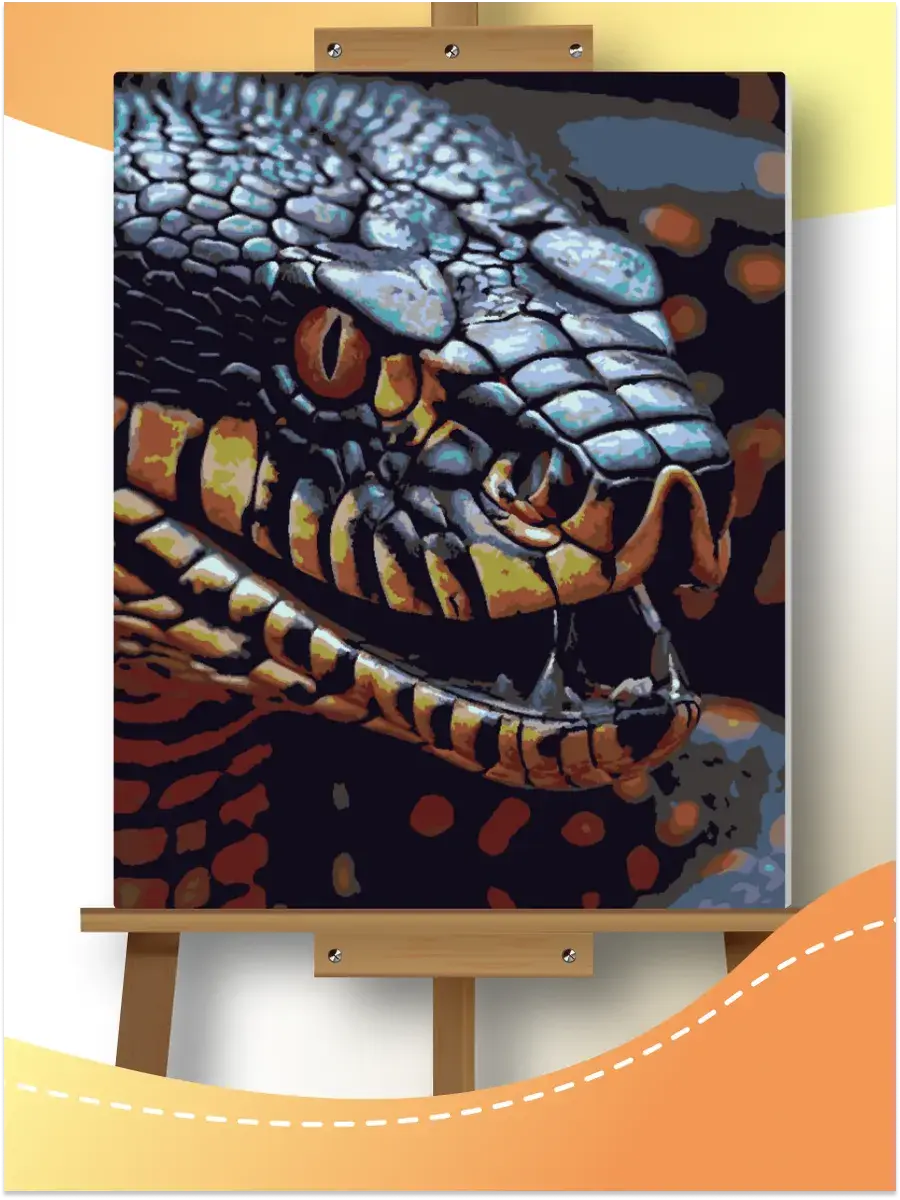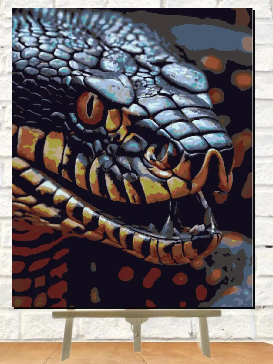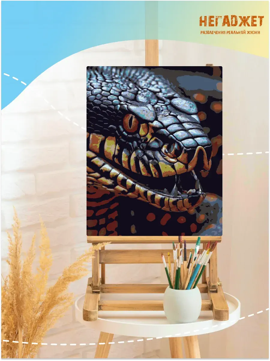 Яркая картина по номерам 40*50 см - с животными, символ 2025 года, змей искуситель. Рисование по номерам будет интересно для девочек, детей и подростков, которые увлекаются рукоделием. Раскраска по номерам легко закрашивается красками при помощи удобных кистей. Каждый сегмент картинки отмечен маленькой цифрой, которая соответствует цвету краски. Живопись по номерам хороша тем, что краски не надо смешивать. Картина «Змей-символ 2025 года» представляет собой красочное полотно, выполненное в технике живописи по номерам. На картине изображён яркий змей. Змей выполнен в насыщенных оттенках коричневого и зелёного цветов, что создаёт атмосферу волшебства и таинственности.